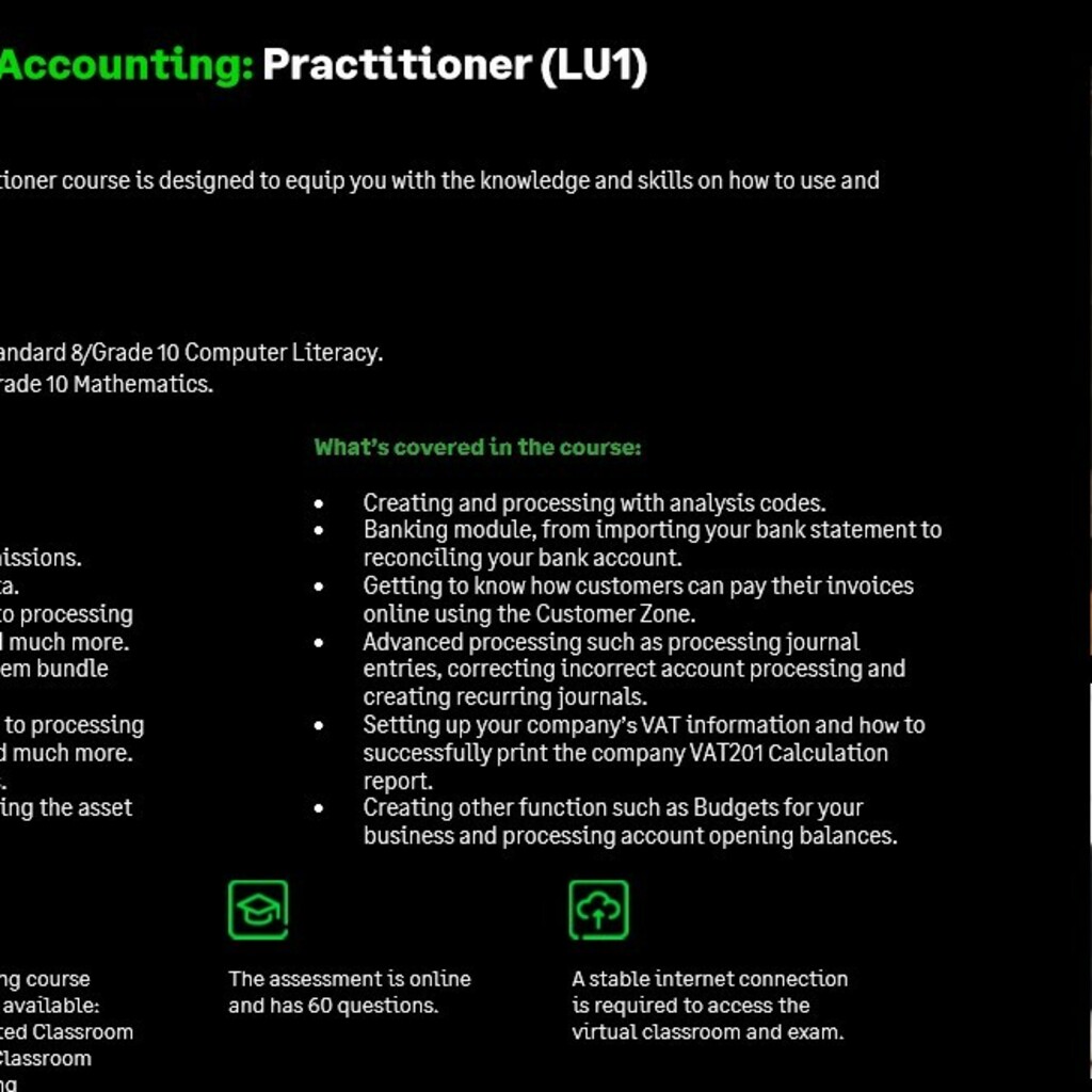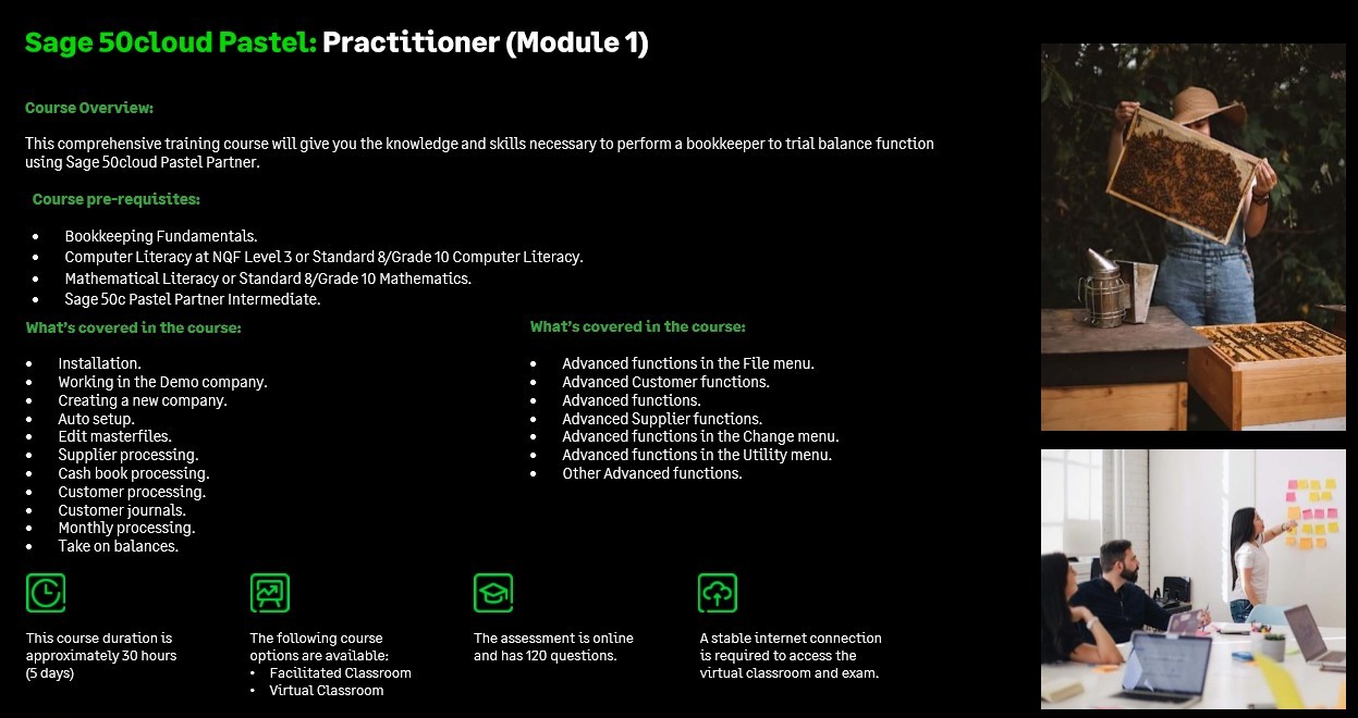 The Sage Accounting Practitioner course is designed to equip you with the knowledge and skills on how to use and implement the Sage Accounting software.