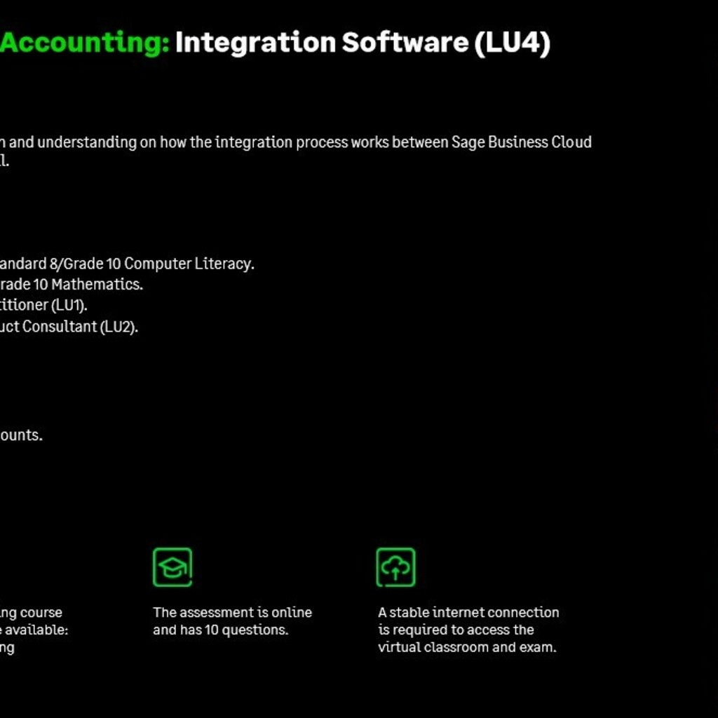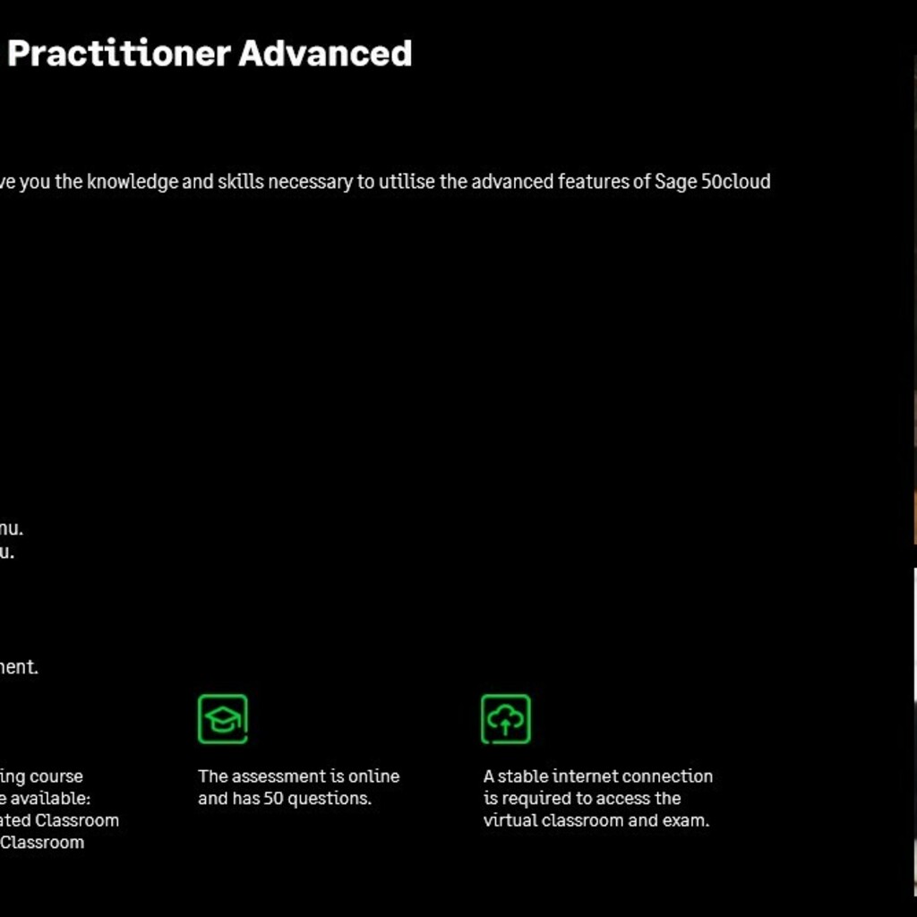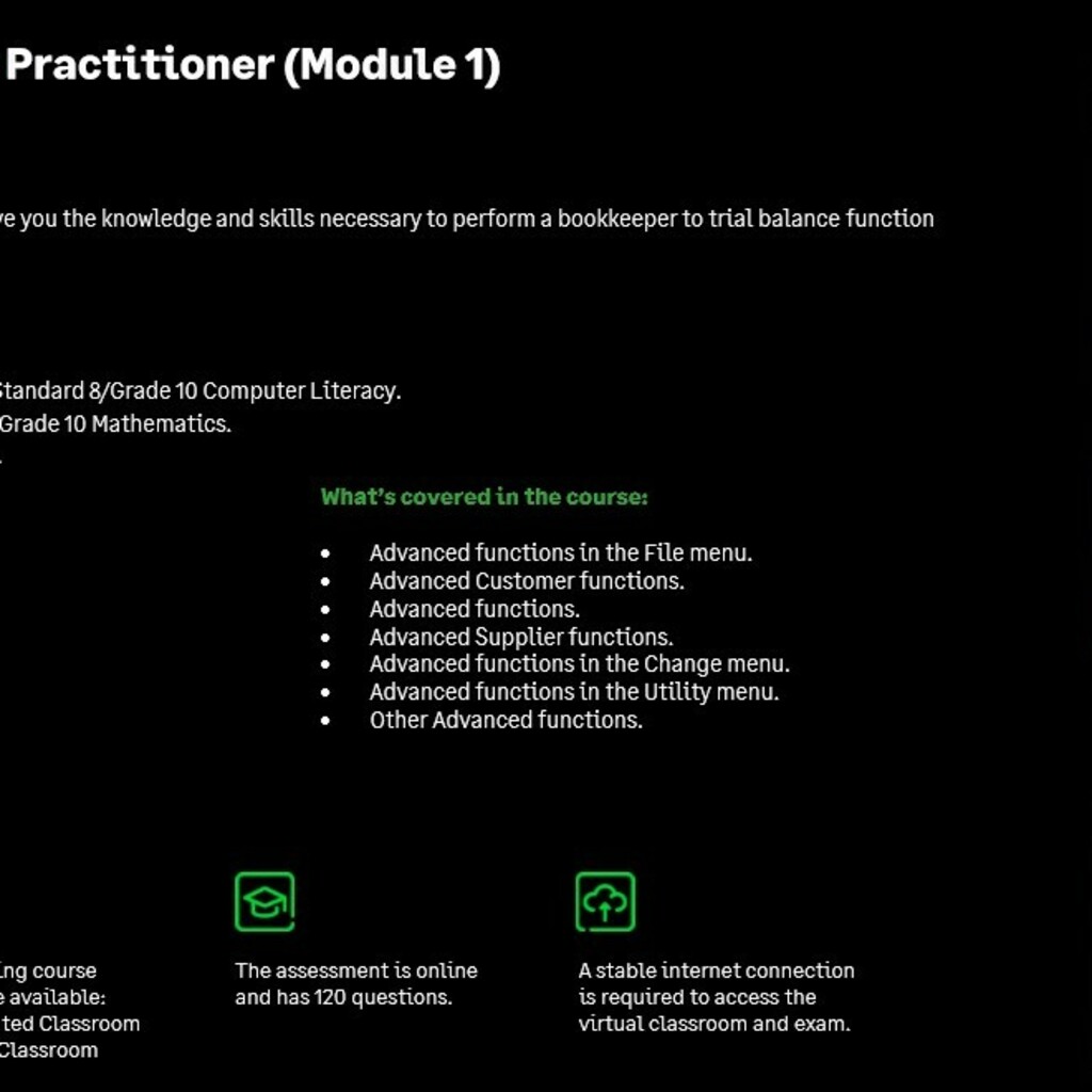 Exam and Certification: The assessment is done online, If the assessment is completed successfully (75% and higher), you will earn a Sage Accounting Certified Practitioner status.